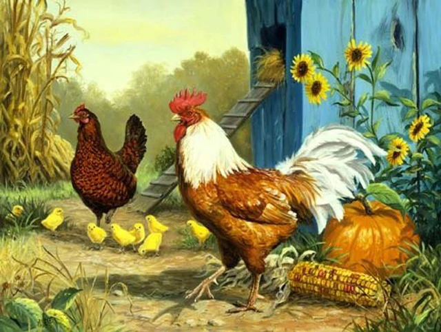 mon petit soldat ta patite Roussette est de plus en plus belle, je ne sais pas encore quelle sera sa couleur définitive, elle est d'un joli doré un peu moins roux maintenant, avec de superbes dessins gris et noir sur le bout des ailes, et un double trait noir qui part du sommet de sa tête jusque à sa petite queue, elle est vive et joyeuse, et c'est curieux, la petite Clari est souvent la première à prendre la poudre d'escampette, suivie de coquine dans sa pèlerine noire à capuche sur sa chemise blanche (encore dorée pour l'instant,) et dès que Coquine a sauté à la suite de Clari, Roussette prend le même chemin, elles sont sous leur poulailler à fureter , toujours ensembles sans doute se raconte-t-elles des histoire de poussin!